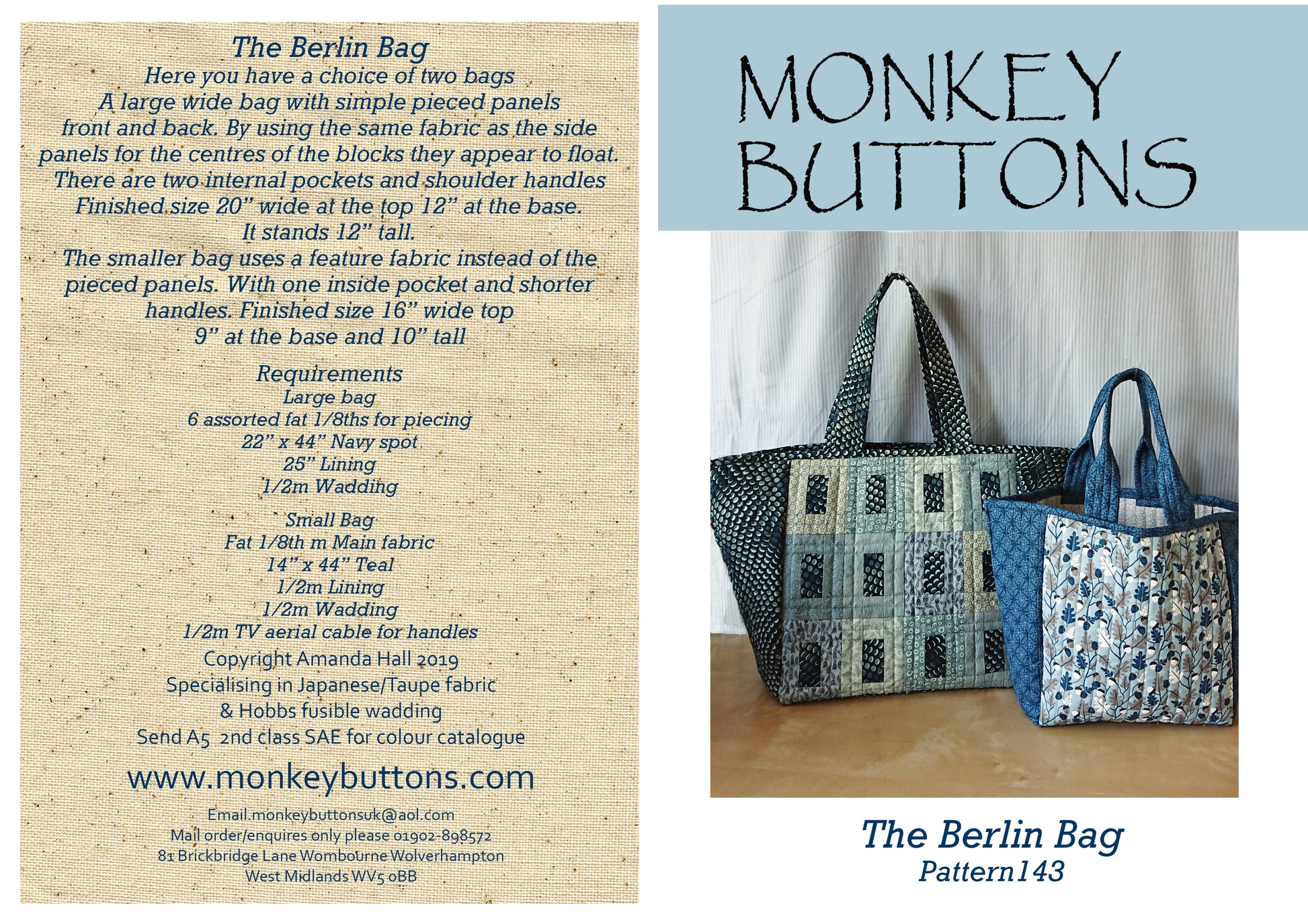 You have a choice of two different bags to make with this pattern. They are both the same shape but the larger version has simple pieced panels front and back using the same fabric as the sides so that the grid appears to float over the background.
