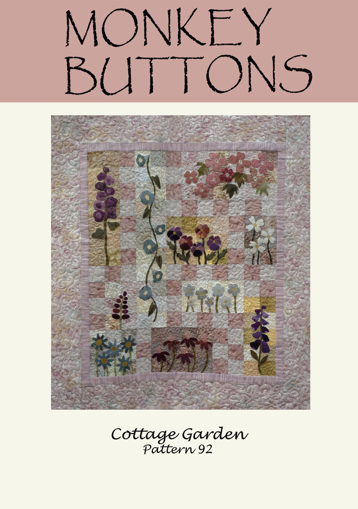 as summer really takes hold and the Clematis start blooming. I’ve included many of my favourite flowers in this wall hanging. Each of the flower panels are appliquéd onto a pieced background to add interest.