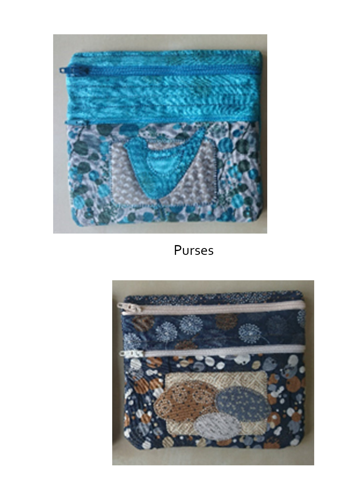 The small co-ordinating purses follow along the same lines with the double zips and have either an appliqued bird or a trio of eggs.