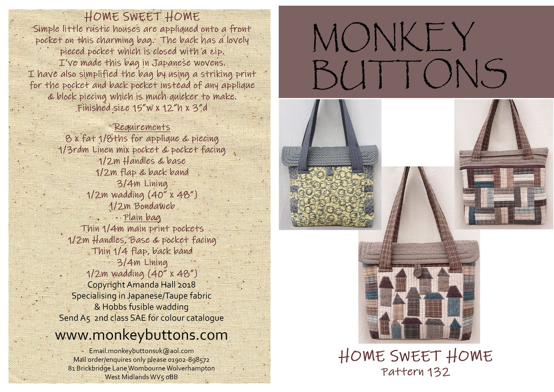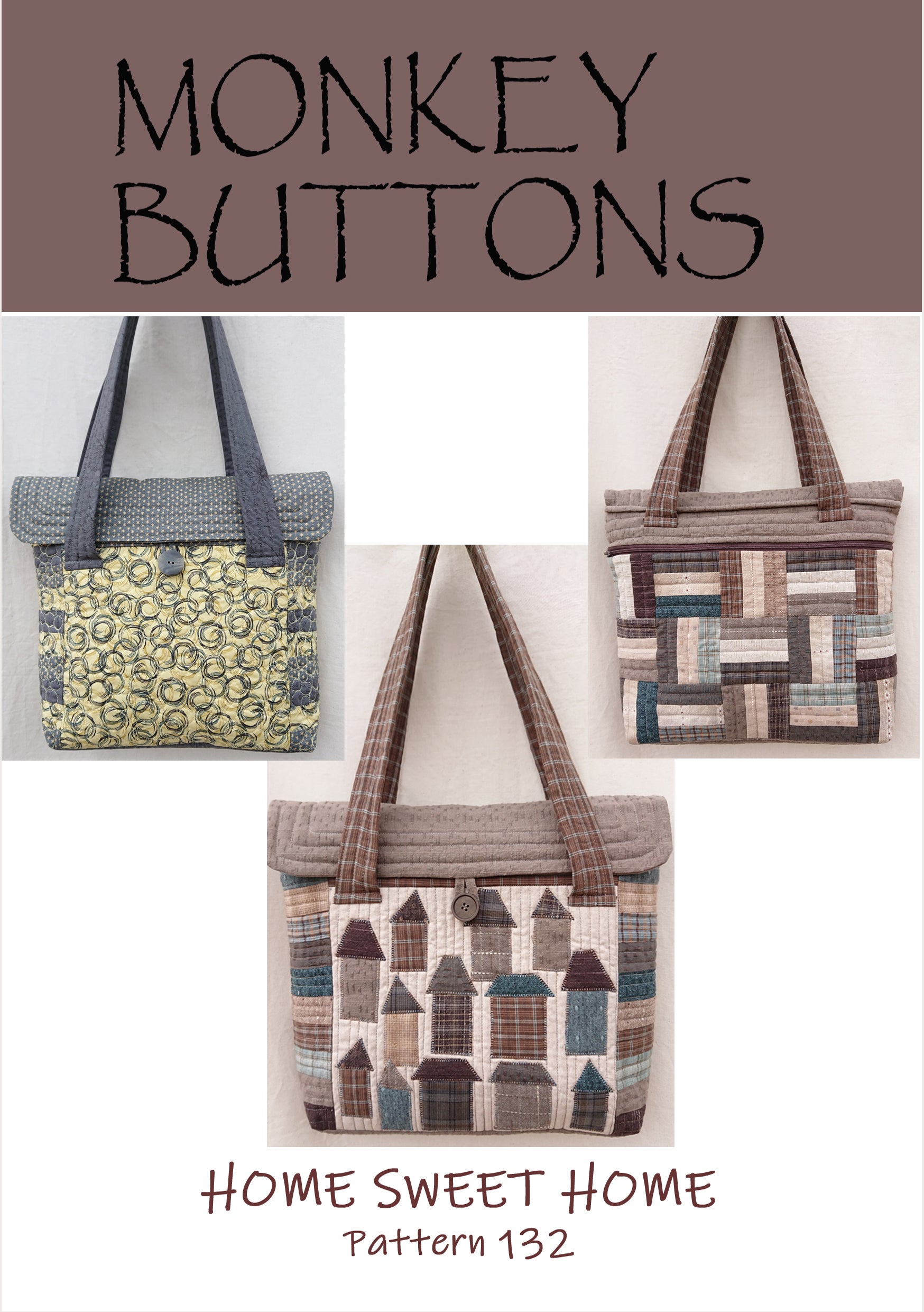 Simple little applique houses are appliqued onto a linen panel which forms the front pocket of this handbag.