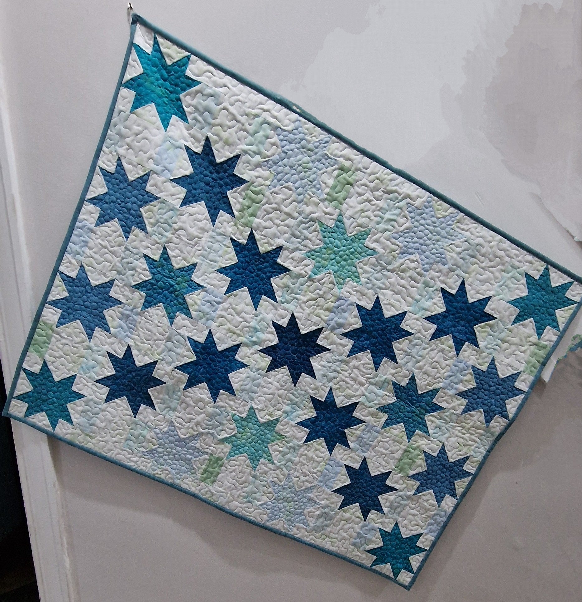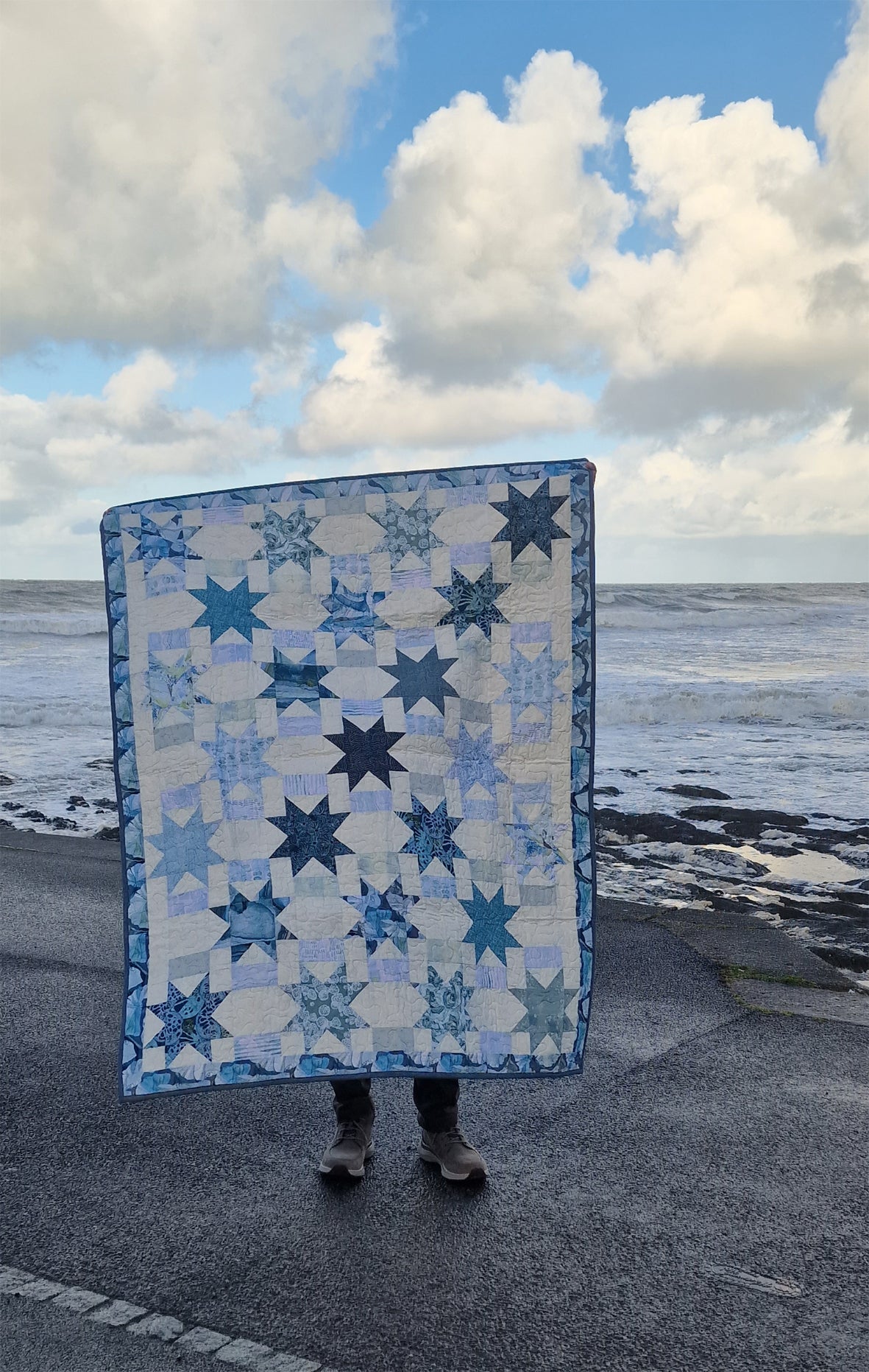 This stunning Star Quilt uses stronger colours for the stars to create a large X design from corner to corner, as a focal point, with paler stars almost fading into the background.