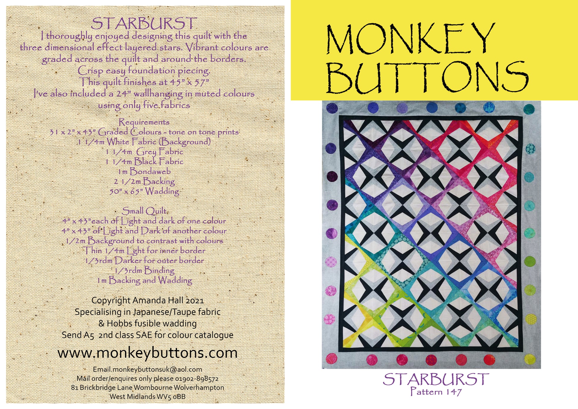 This quilt contains 48 blocks & finishes at 36” x 48” with borders 45” x 57”.