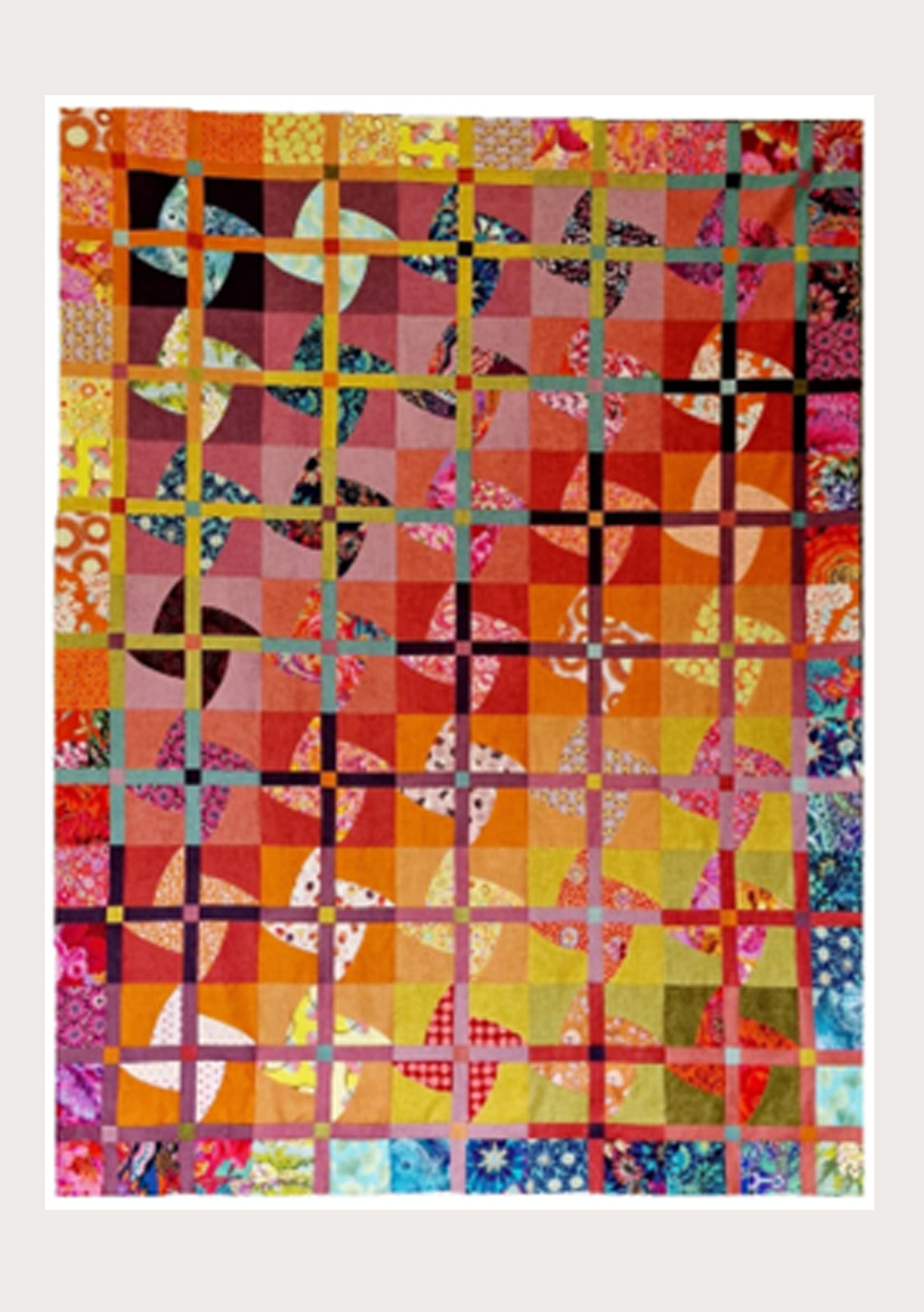 Finished size for Bright Swirl 5 blocks x 7 blocks 50” x 68” approx.